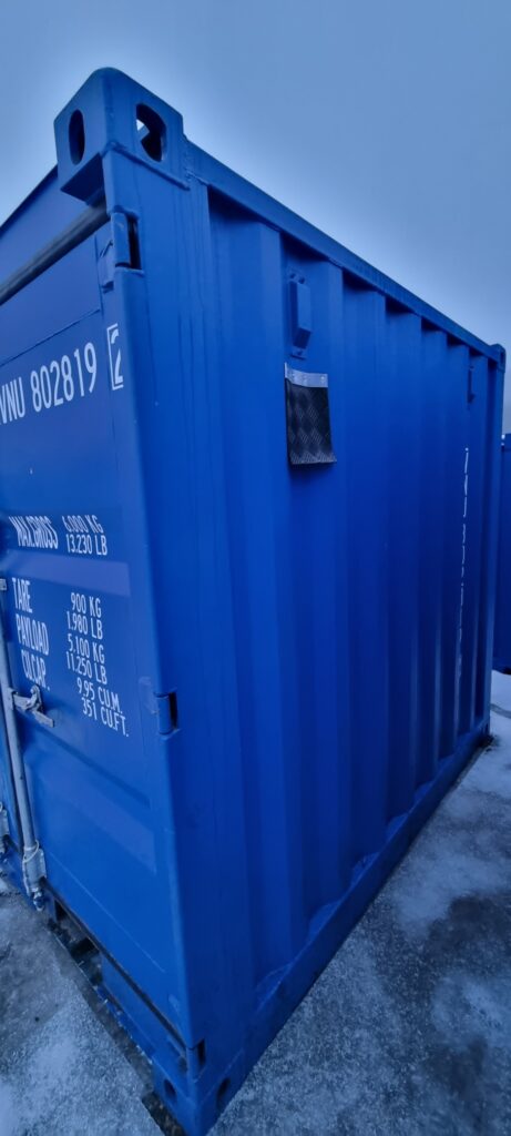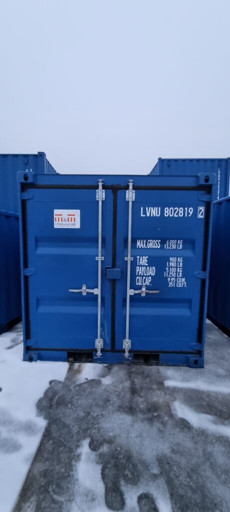 8 fot container som tidigare varit uthyrd.