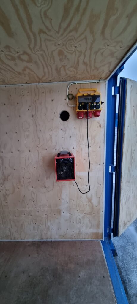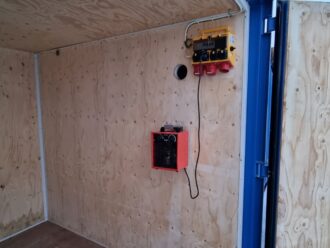 El-central, belysning samt 2kw värmefläkt.